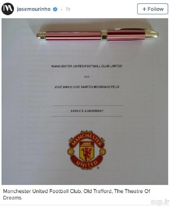 روزنو :ژوزه مورینیو به محض پیوستن به یونایتد اینستاگرامش را افتتاح کرد و اولین عکس او بسیار جالب است.او عکسی از قراردادش با منچستریونایتد را به عنوان اولین عکسش منتشر کرد. جالب اینجاست که او کمتر از 2 ساعت است که به اینستاگرام ملحق شده و 82.5K فالوور دارد.