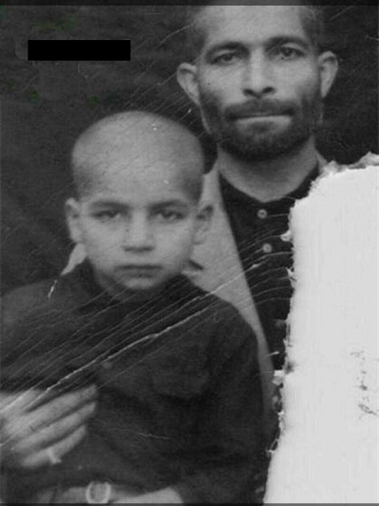 در این عکس حسن روحانی در کنار پدرش دیده می شود