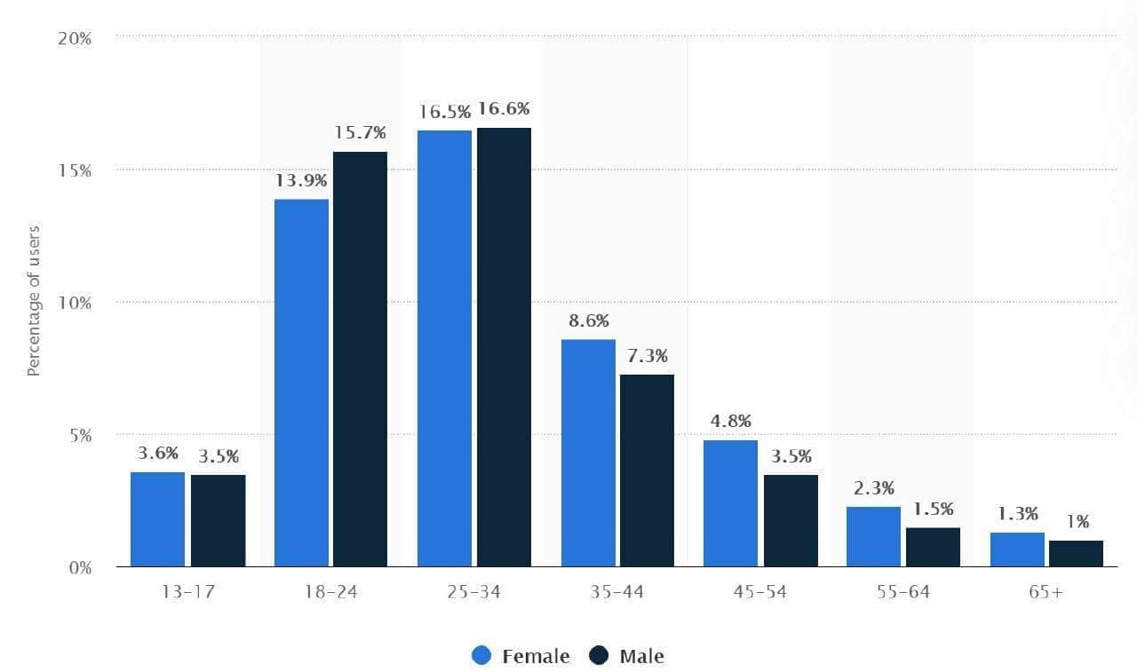 مطابق با آمار سایت statista در اوکتبر سال ۲۰۲۰، ۵۱ درصد از کاربران اینستاگرام در سرتاسر جهان، زنان هستند.