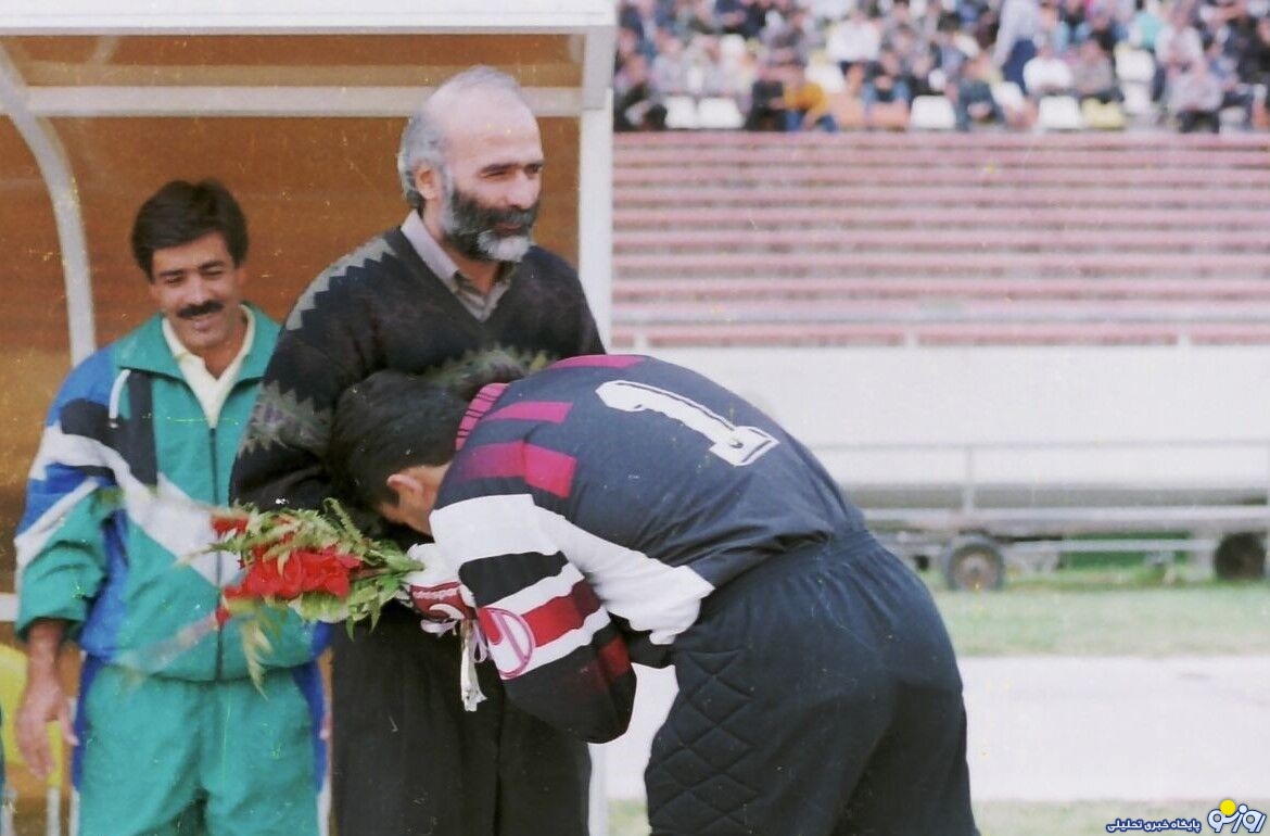 این عکس مربوط به دهه ۷۰ است و به بازی پرسپولیس مقابل ذوب آهن برمی‌گردد. احمد رضا عابدزاده عقاب آسیا پیش از آغاز بازی این چنین بر دستان رسول کربکندی استاد پیشین خودش و سرمربی ذوب آهن بوسه می‌زند تا ادای احترام کند.