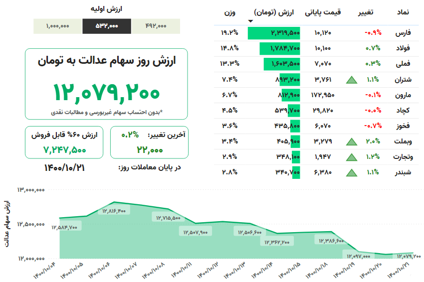 ارزش سهام عدالت، امروز ۲۱ دی ۱۴۰۰