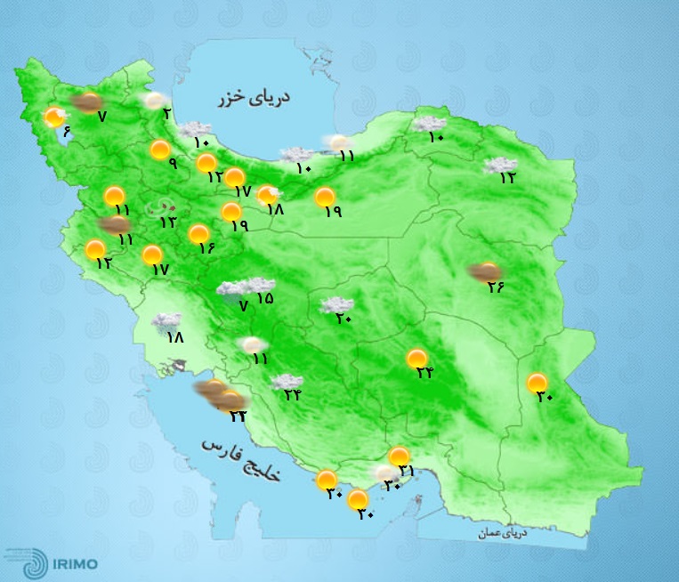 کارشناس سازمان هواشناسی اضافه کرد: تهران هم امروز آسمانی صاف تا قسمتی ابری و گاهی وزش باد را خواهد داشت و حداقل دما در پایتخت امروز ۱۰ درجه سانتی‌گراد در ایستگاه مهرآباد ثبت شد و حداکثر دما هم امروز در تهران به ۲۰ درجه سانتی‌گراد خواهد رسید و پیش‌بینی می‌کنیم فردا به ۱۲ درجه بالای صفر برسد.