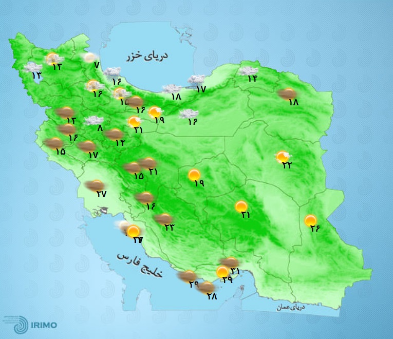وضعیت آب و هوا، امروز ۱۲ اردیبهشت ۱۴۰۱ / ادامه بارشها در نیمه شمالی کشور/ احتمال خیزش گرد و غبار در استانهای غربی