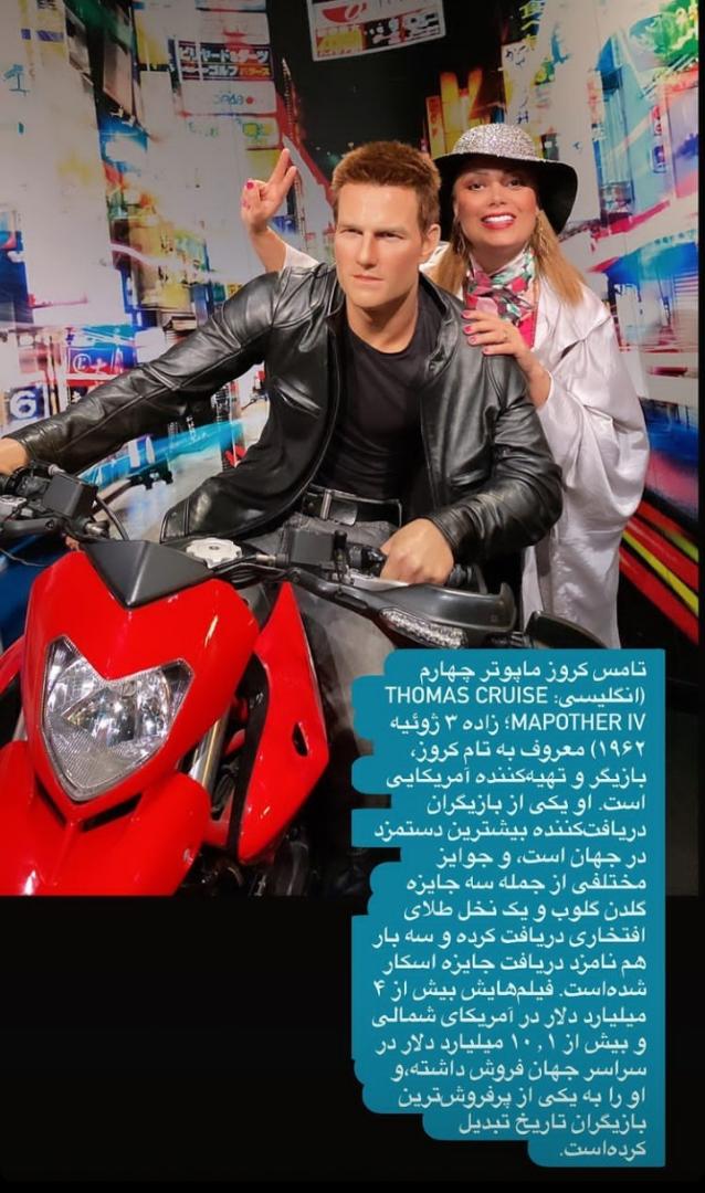 یکی از عکس های صبا راد در موزه مادام توسو که بسیار مورد توجه قرار گرفته است عکس او با تام کروز روی موتور است.