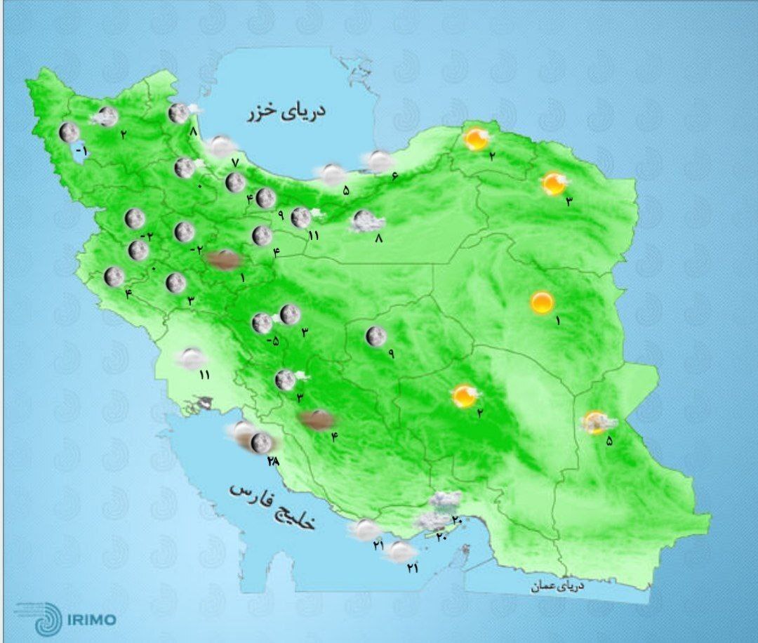 وی افزود: بیشینه دمای امروز پایتخت به ۲۰ درجه بالای صفر و کمینه دما هم به ۱۲ درجه بالای صفر رسید و فردا هم ۱۱ درجه بالای صفر پیش بینی میشود.