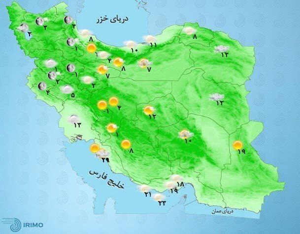 کارشناس سازمان هواشناسی با بیان این‌که سرد ترین نقطه در کشور به استان البرز و دیزین بالا با ۱۰ درجه زیر صفر، دیزین پایین ۶ درجه زیر صفر و کوهرنگ ۵ درجه زیر صفر گزارش شده است، گفت: گرم‌ترین نقطه در کشور نیز به هامون در استان سیستان و بلوچستان اختصاص دارد که دیروز دمای ۳۵ درجه بالای صفر را تجربه کرد.