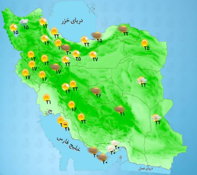 رئیس مرکز ملی پیش‌بینی و مدیریت بحران مخاطرات وضع هوا درباره وضعیت جوی تهران طی دو روز آینده نیز اظهار کرد: آسمان تهران جمعه ( ۱۲خرداد ) صاف تا قسمتی ابری و در بعضی ساعت‌ها همراه با وزش باد با حداقل دمای ۲۳ و حداکثر دمای ۳۶ درجه سانتیگراد و روز شنبه (۱۳ خرداد) صاف تا قسمتی ابری و در بعضی ساعت‌ها همراه با وزش باد با حداقل دمای ۲۱ و حداکثر دمای ۳۷ درجه سانتیگراد پیش‌بینی می‌شود.