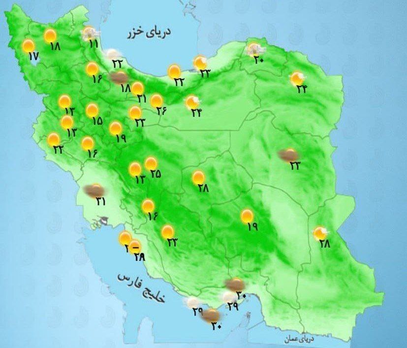 همچنین بیشینه دمای امروز تهران ۳۴ درجه و کمینه دما به ۲۳ درجه رسیده است.