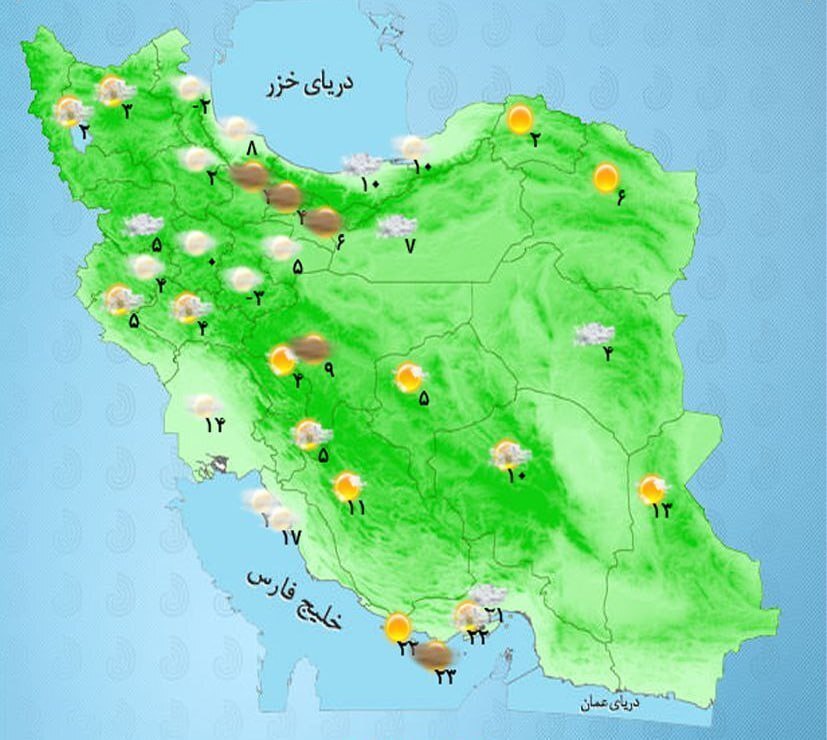 بر اساس نقشه‌های همدیدی و‌ آینده‌نگری سازمان هواشناسی امروز در سیستان و بلوچستان، شرق هرمزگان و جنوب کرمان رگبار، رعدوبرق و وزش باد پیش‌بینی می‌شود. در اواخر وقت نیز در مناطقی از شمال غرب و غرب کشور بارش‌های پراکنده روی می‌دهد.