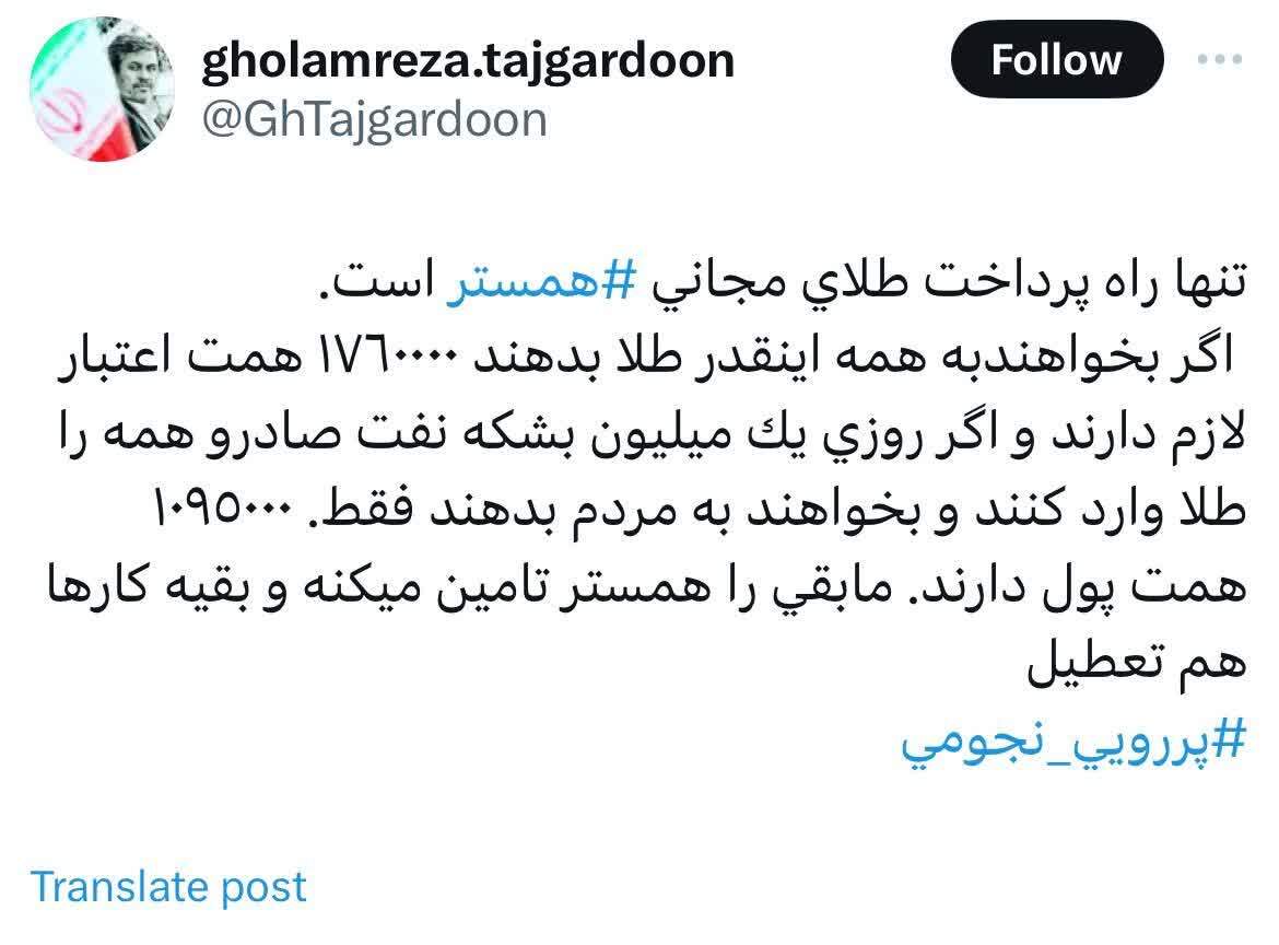 غلامرضا تاجگردون با کنایه نوشت: