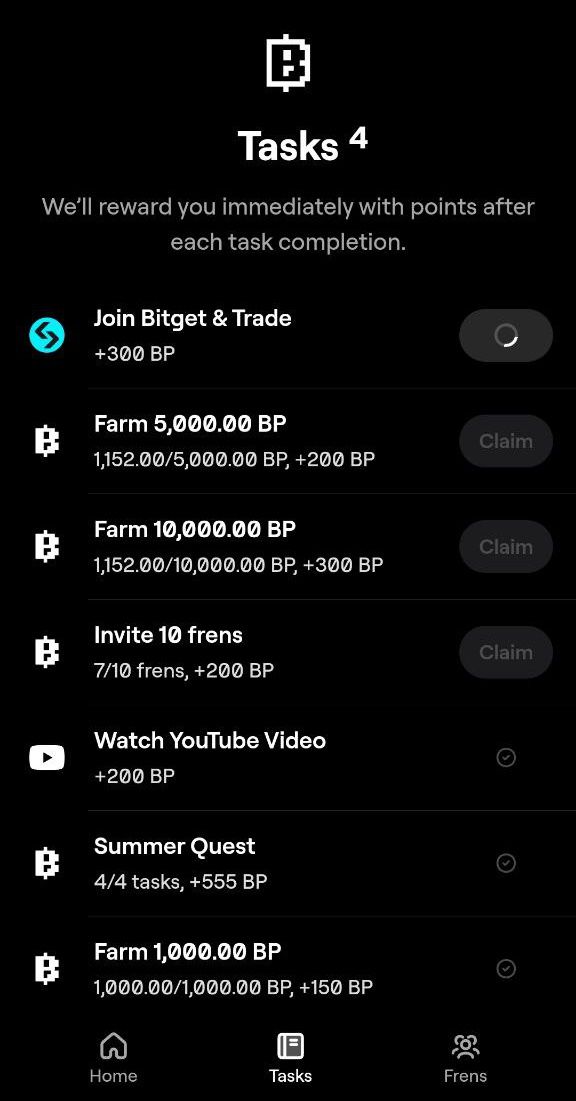 بازی Blum مثل سایر رقبای تلگرامی خود بخش تسک یا وظایف دارد. با انجام تسک‌های مشخصی نظیر دنبال کردن حساب ایکس، کانال تلگرام و لایک کردن توییت‌ها می‌توانید سکه بیشتر جمع کنید.