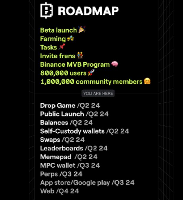 پروژه بلوم قصد دارد در سه ماهه سوم سال 2024 میلادی، اپلیکیشن موبایلی و کیف پول ام پی سی – MPC خود را عرضه کند و در سه ماهه پایانی سال نسخه وب خود را راه‌اندازی نماید. در تصویر فوق نمایی از Roadmap بلوم را مشاهده خواهید کرد که برخی از اهداف تا امروز تحقق یافته‌اند.