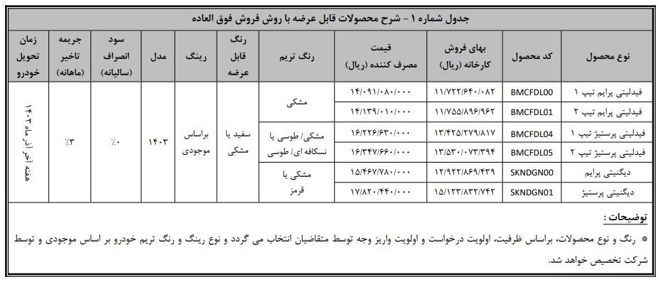 این طرح از تاریخ پنجشنبه مورخ 1403/05/18 لغایت شنبه مورخ 1403/05/27 در سایت فروش این شرکت فعال خواهد بود.