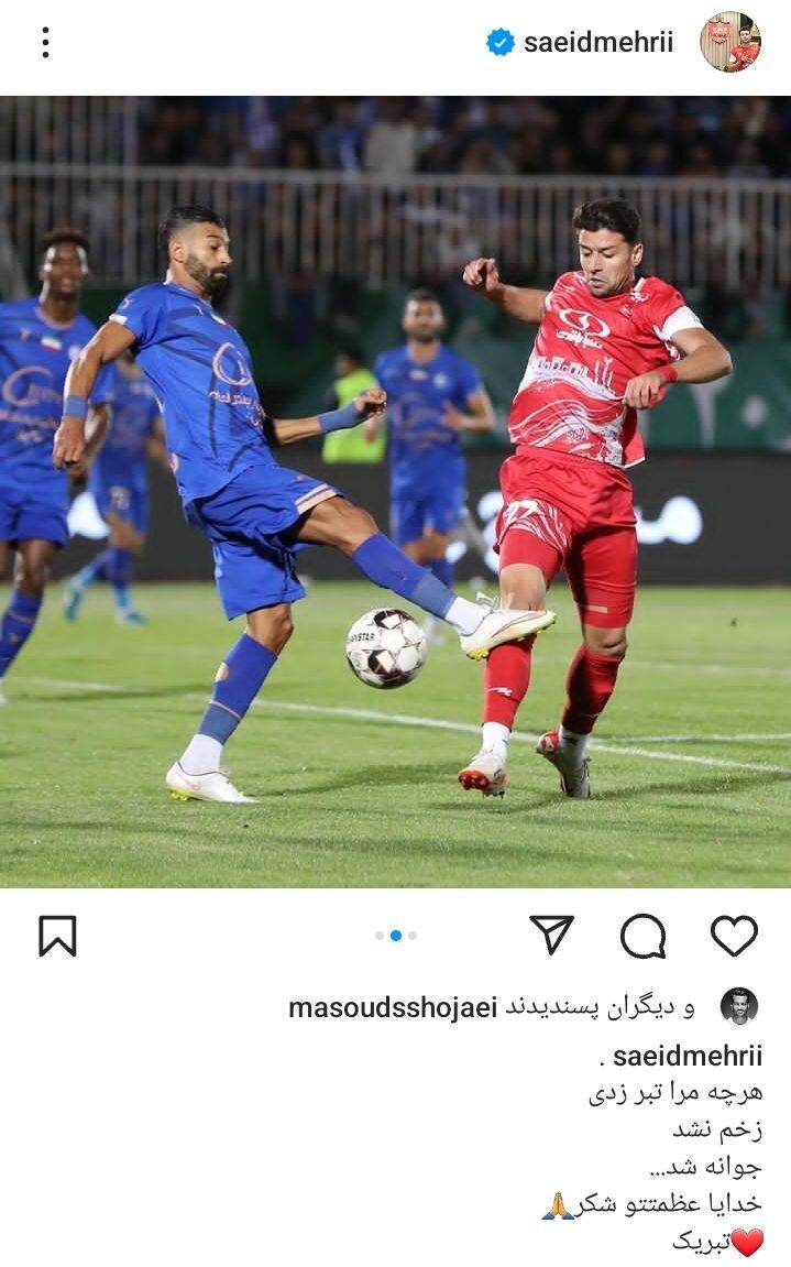 عکس| پست کنایه‌آمیز سعید مهری به استقلالی‌ها پس از پیروزی در دربی