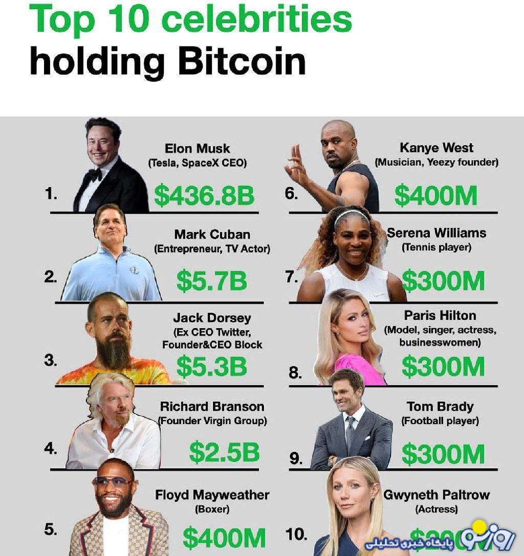 عکس/ ۱۰ سلبریتی معروف دنیا با بیشترین دارایی بیت‌کوین