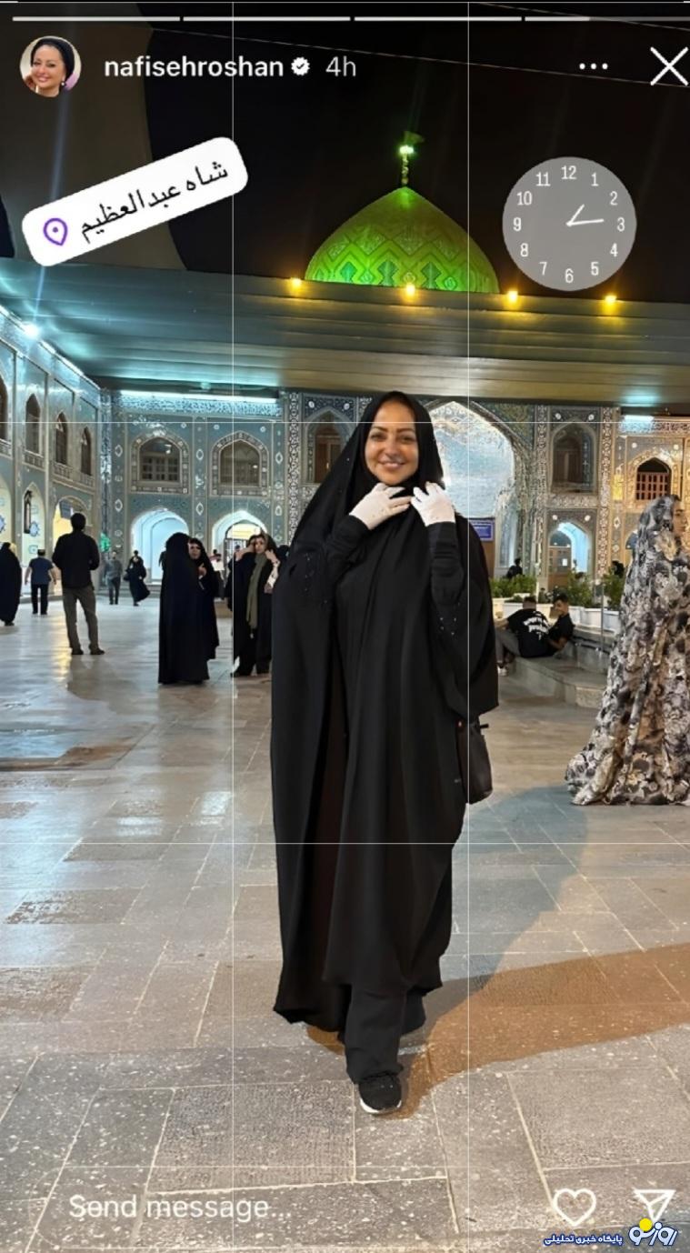 روزنو :نفیسه روشن در صفحه شخصی اینستاگرامش عکسی با چادر مشکی در حرم شاه عبدالعظیم منتشر کرد.