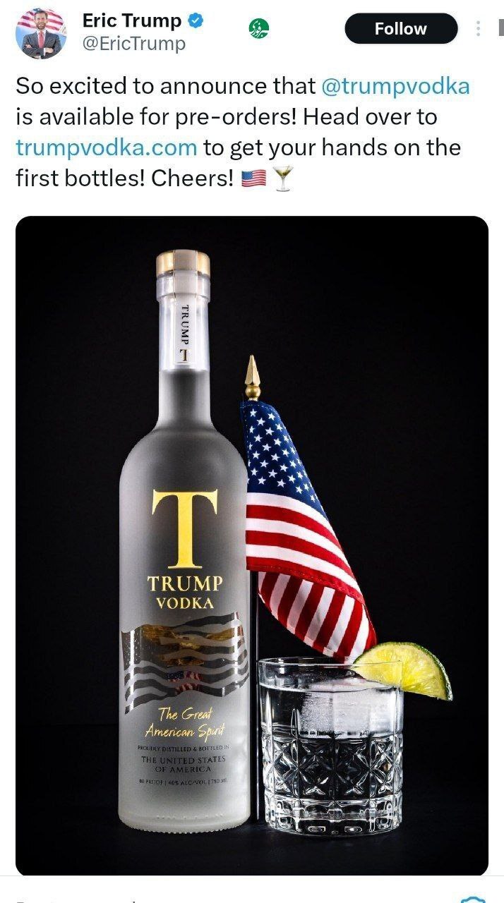 پسر دونالد ترامپ از عرضه ودکای ترامپ خبر داد!