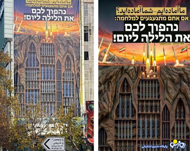 روزنو :از دیوارنگاره جدید میدان فلسطین تهران با پیامی جنگی و هشدارآمیز رونمایی شد